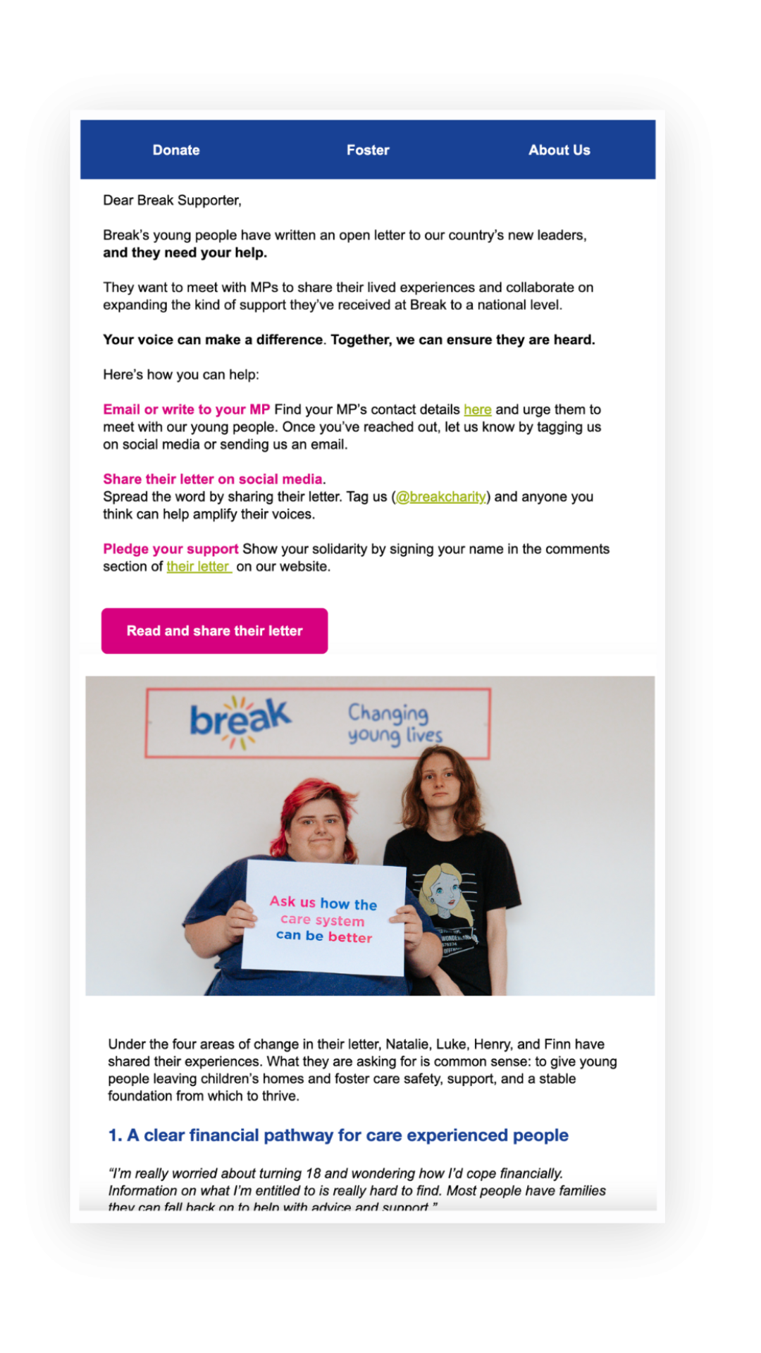 At Break, I introduced email marketing to the wider team and streamlined sign-up processes, growing the subscriber list by 800% and boosting monthly sign-ups.